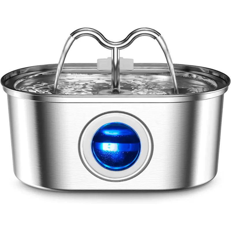 Dispenser Apă Automat pentru Pisici și Câini, Oțel Inoxidabil, 3.2L, Filtrare Activă, Circulație Dublă, Fereastră Nivel Apă, Argintiu