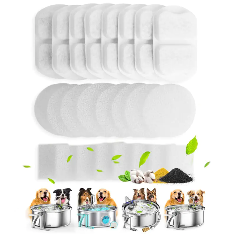 Set de 3x 8 Filtre Elindor® pentru Dispenser de Apa Animale Tip Adapator, Accesorii Purificare si Filtrare Tripla pentru Fantana Pisici si Caini, Elimina Eficient Firele de Par si Impuritatile, Compatibile Fantani Inox 7 Litri, Alb