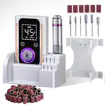 Freza electrica Elindor atinge 45.000 RPM, are baterie reîncărcabilă cu autonomie de până la 10 ore, display LED și funcție de memorie. Include 6 capete și 50 benzi abrazive, ideală pentru manichiură, pedichiură și îngrijire profesională. Compactă, portabilă și silențioasă, cu rotație reversibilă.