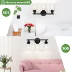Montare reversibilă sus-jos: Această lampă versatilă pentru oglindă poate fi instalată fie în sus, fie în jos, oferindu-vă libertatea de a personaliza iluminatul în funcție de preferințele dumneavoastră. Este potrivită pentru diverse locații, cum ar fi oglinzi de baie, paturi, intrări, dulapuri, livinguri, oglinzi cu dulapior, mese de toaletă, verande și coridoare. Îmbunătățiți atmosfera casei dumneavoastră și a altor spații cu această soluție de iluminat elegantă și adaptabilă.