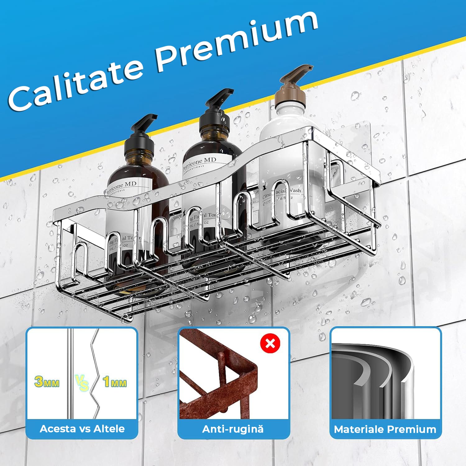 Materiale Premium: Organizatorul este fabricat din materiale de inalta calitate, rezistent la apa, rezistent la coroziune, rezistent la zgarieturi, fiind astfel durabil si usor de intretinut. Durata de viata a organizatorului de baie pentru dus este de 8 ani.