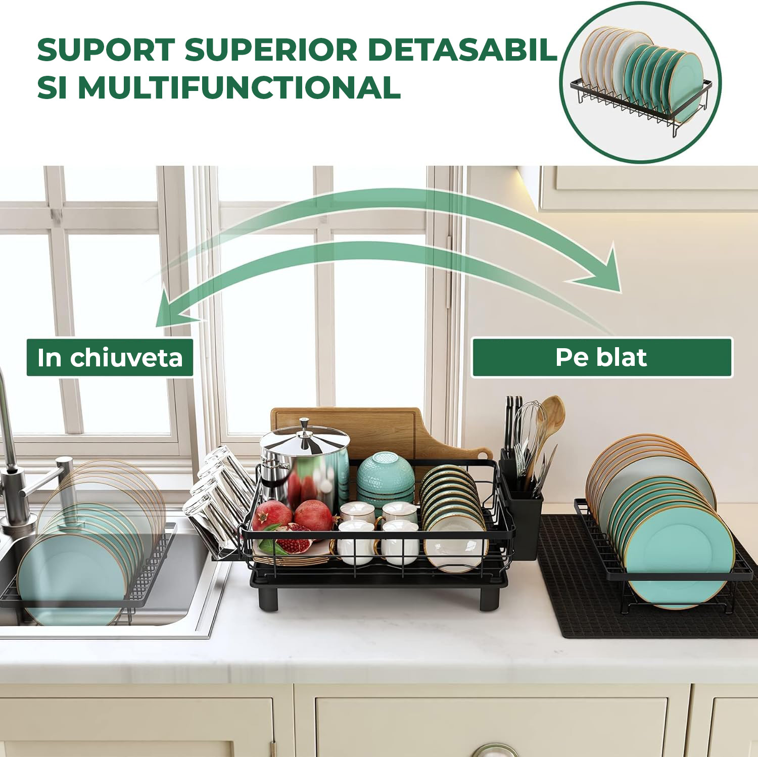 Bucătării mici sau medii, familii de 1–3 persoane, organizare eficientă a veselei și tacâmurilor în condiții igienice și sigure.
