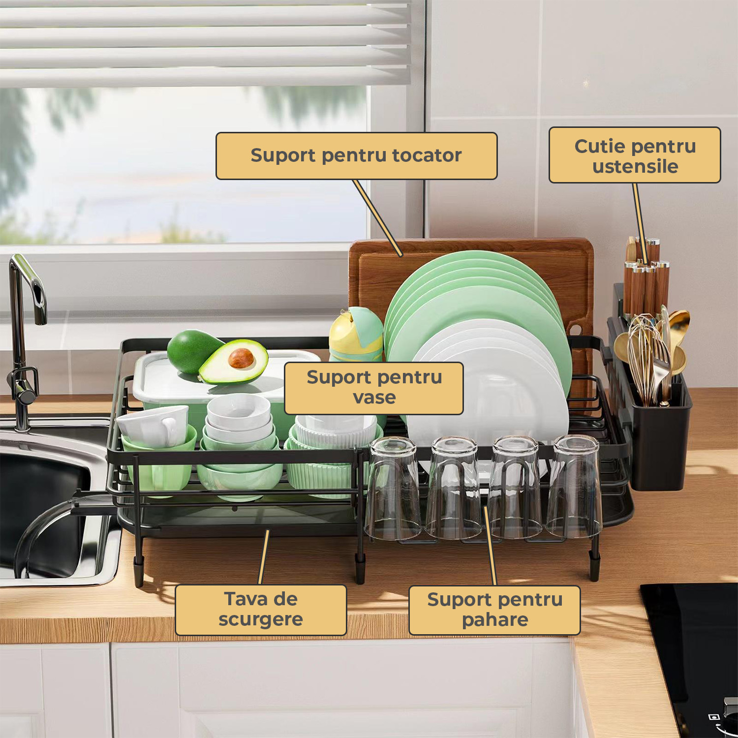 Design extensibil – se ajusteaza usor pentru a se potrivi oricarei chiuvete sau blat de bucatarie.