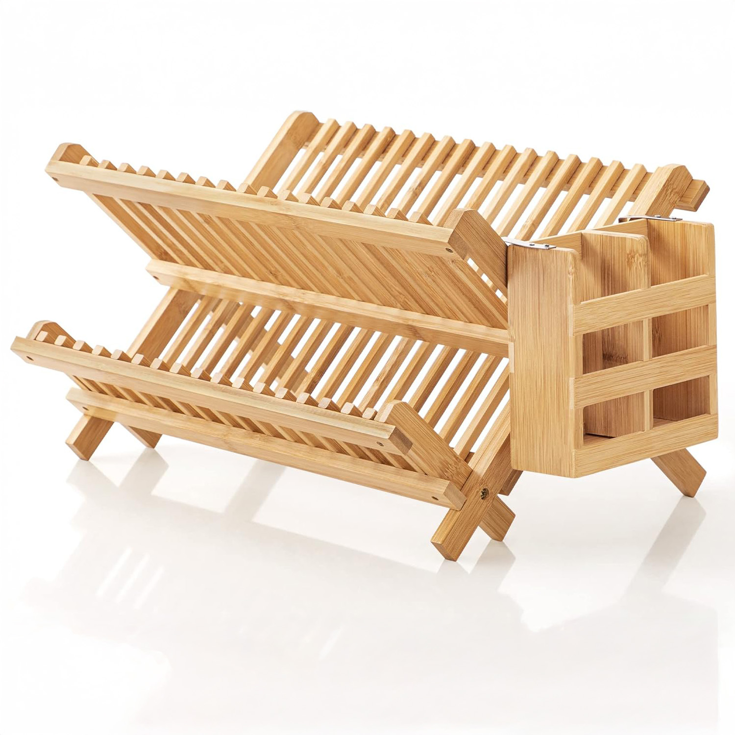 Acest suport de vase elegant și practic este realizat din bambus natural, fiind soluția ideală pentru uscarea și organizarea farfuriilor, bolurilor, cănilor și tacâmurilor. Designul pliabil îl face ușor de depozitat și perfect pentru orice bucătărie modernă.