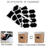 24 Etichete Reutilizabile Incluse — Pe langa cele 24 de recipiente, vei primi si 24 de etichete refolosibile. Le poti sterge cu o laveta umeda si schimba denumirea continutului ori de cate ori ai nevoie, pentru o organizare flexibila si personalizata.