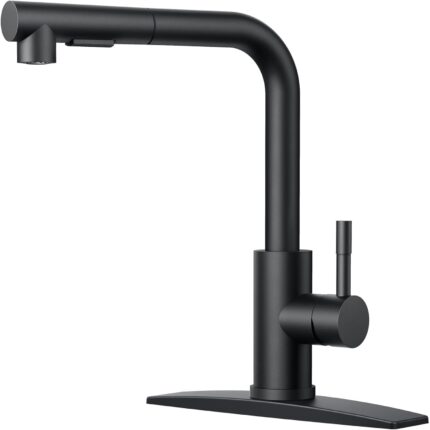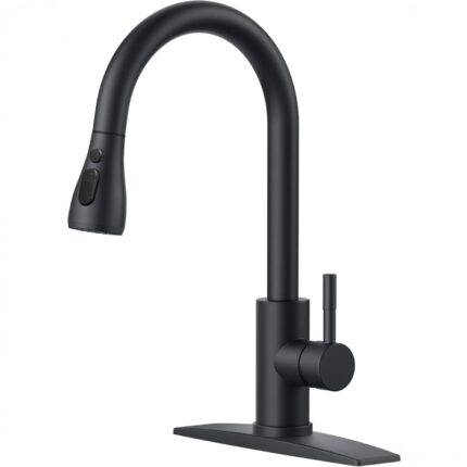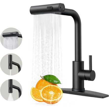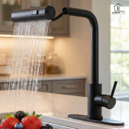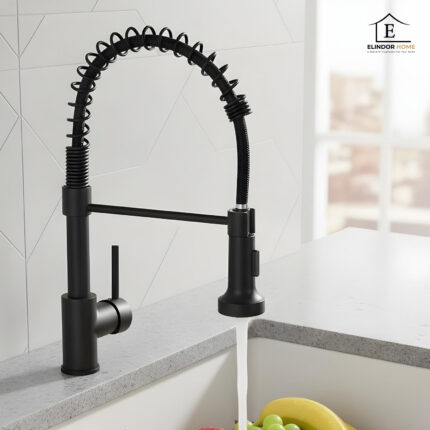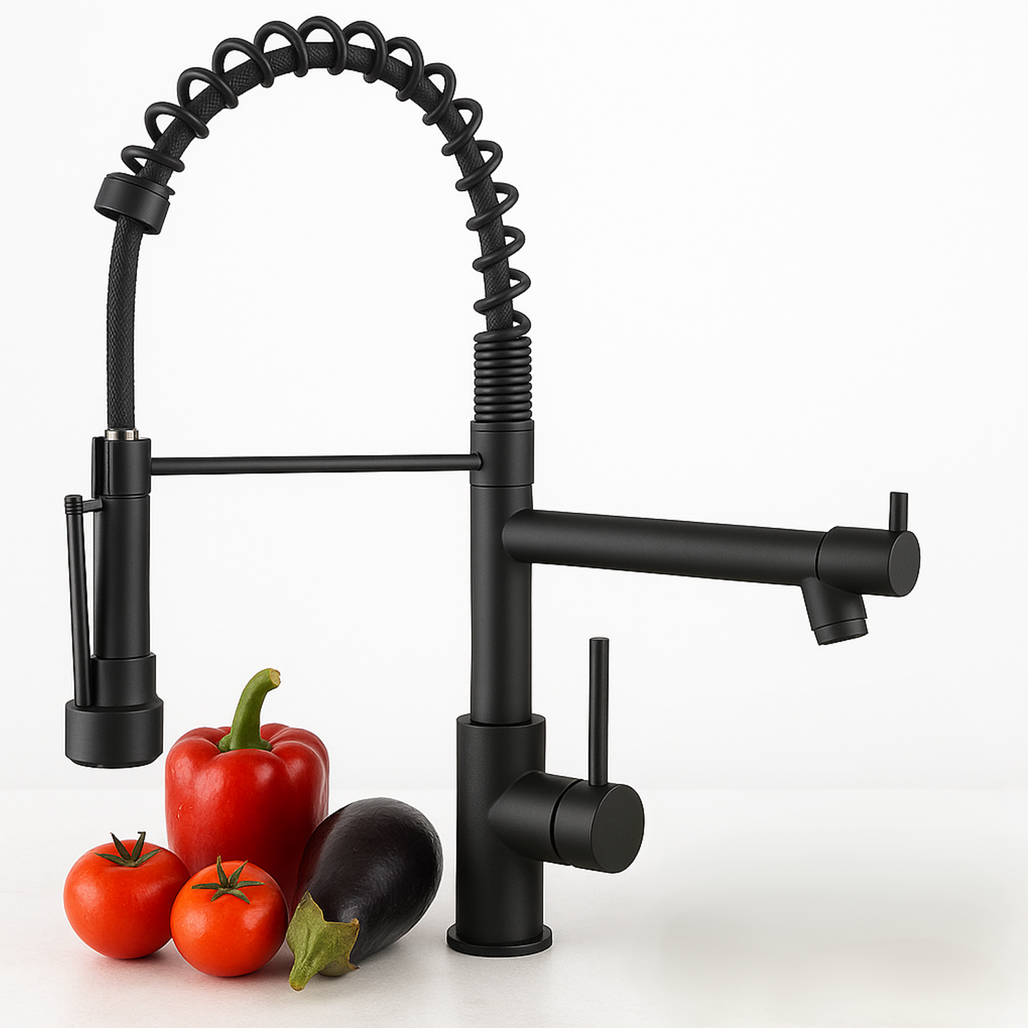 Baterie Bucătărie Premium, Monocomandă cu Duș Extractibil, Pipa Înaltă, 360°, Negru Mat