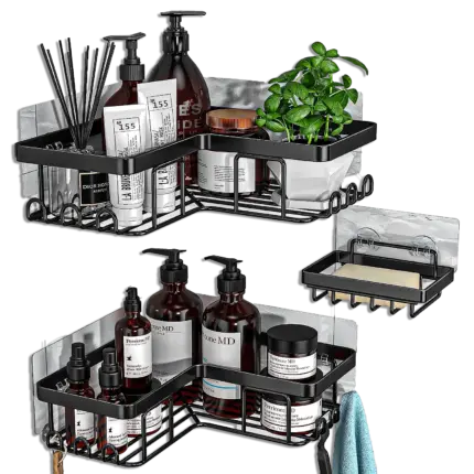 Set 3 Rafturi Elindor® pentru Duș, din Oțel Inoxidabil, Adeziv Puternic, Gri